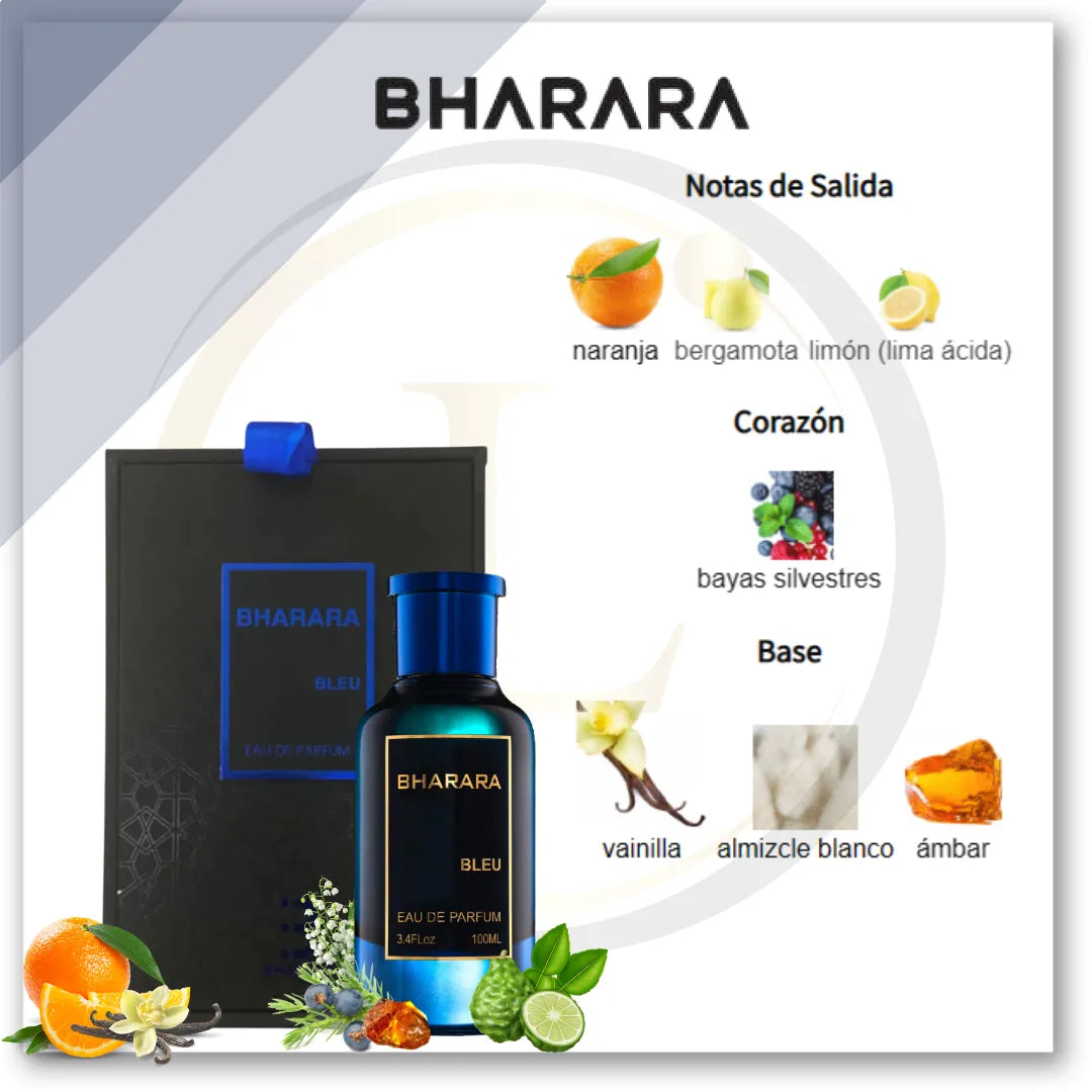 Bharara Bleu es una fragancia fresca, versátil y moderna, que combina cítricos luminosos con un corazón afrutado vibrante y un fondo cálido y elegante. Perfecta para quien busca un aroma equilibrado, contemporáneo y fácil de llevar, ideal tanto para el día a día como para momentos casuales o relajados.