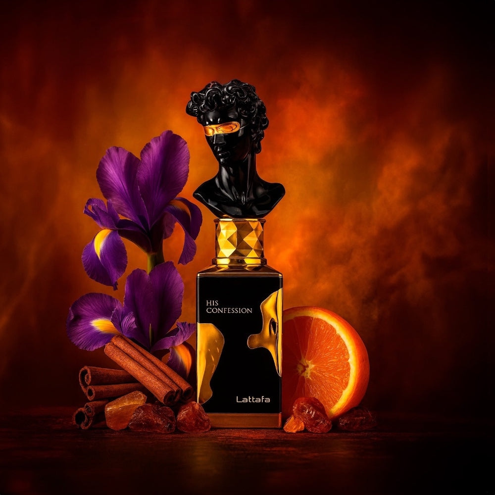 His Confession es una fragancia masculina intensa y sofisticada que combina una apertura especiada y fresca con un corazón cálido de notas amaderadas y resinosas, asentándose sobre una base profunda de ámbar, almizcle y maderas oscuras que aporta un aroma elegante, varonil y con presencia. Tiene muy buena duración y una estela marcada, ideal para noches, citas y eventos especiales, perfecta para quienes buscan un perfume atrevido, refinado y con gran impacto.