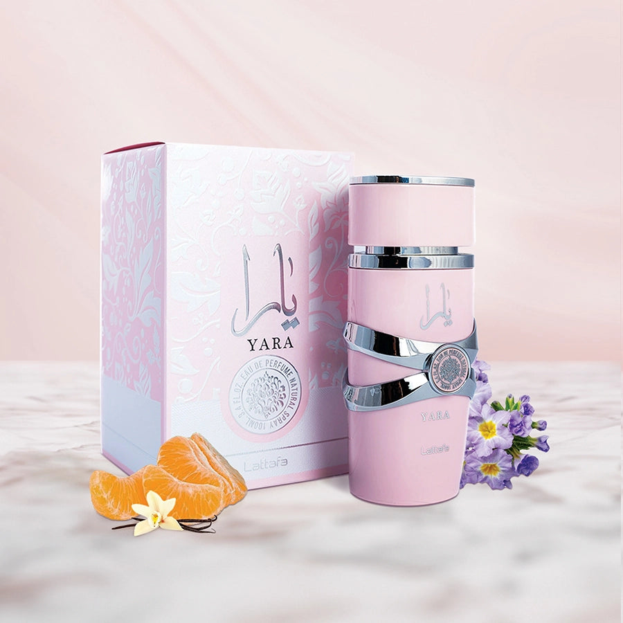 Yara de Latafa es una fragancia femenina dulce, cremosa y delicada que combina notas frutales, florales y vainilla sobre un fondo de almizcle y sándalo. Su aroma es suave, elegante y reconfortante, ideal para el día a día o momentos especiales donde se quiera destacar con feminidad y encanto.
